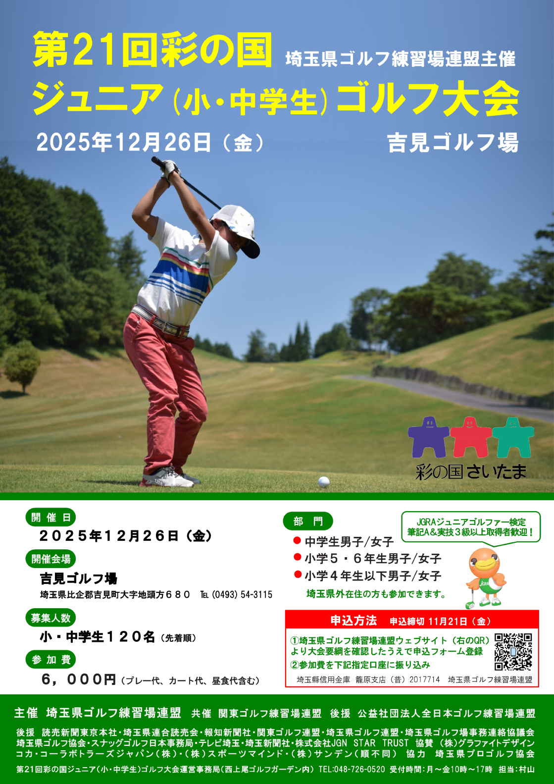 第21回 彩の国ジュニア(小・中学生)ゴルフ大会開催のお知らせ